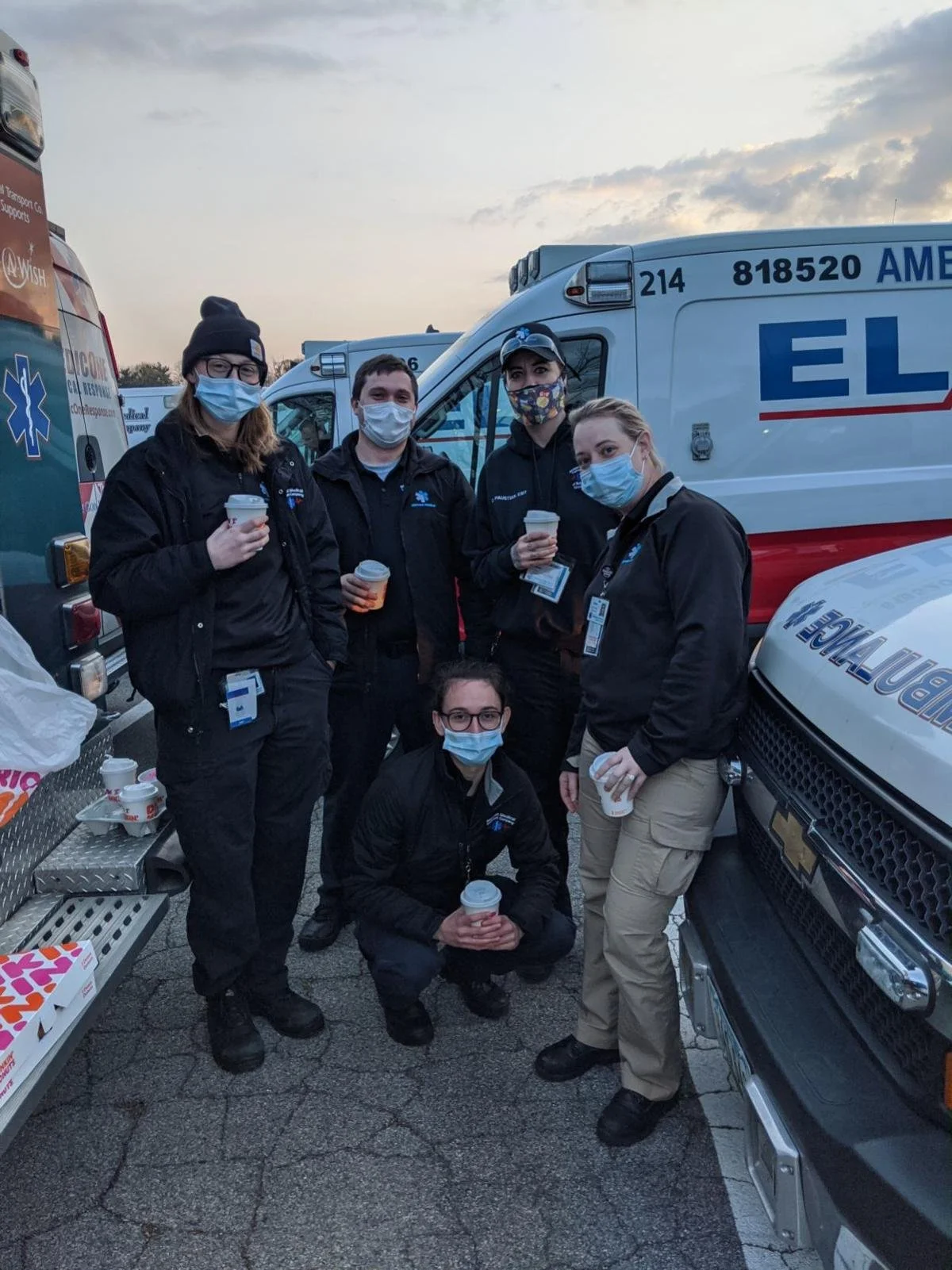 Angela Kirchner, far right, with her team in New York. Kirchner was among 60 Midwest EMTs who drove to the city to assist other first responders. ANGELA KIRCHNER